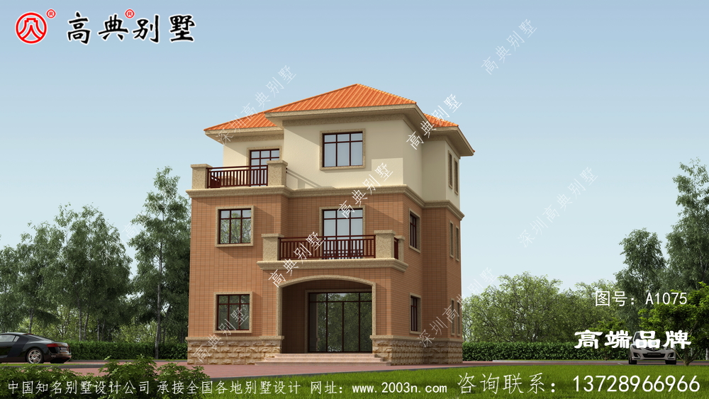 复式设计与橘色坡屋顶相结合温馨大方更加美观
